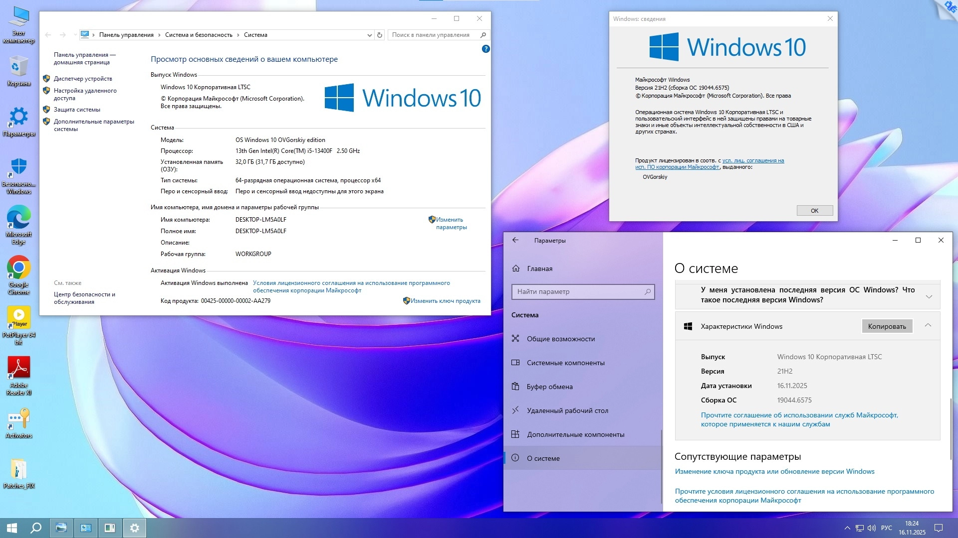 Технические данные Windows 10 Enterprise x64 LTSC 21H2 by OVGorskiy 11.2025 торрент: