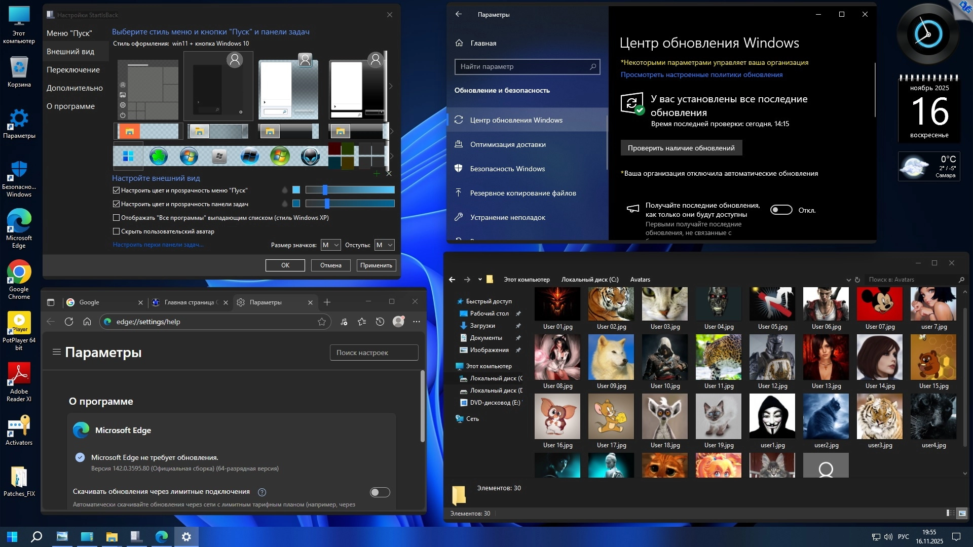 • Отключены: Контроль учётных записей (UAC), защитник Windows, автоматическое обновление, SmartScreen и панель "Люди", несанкционированный доступ к микрофону и камере.